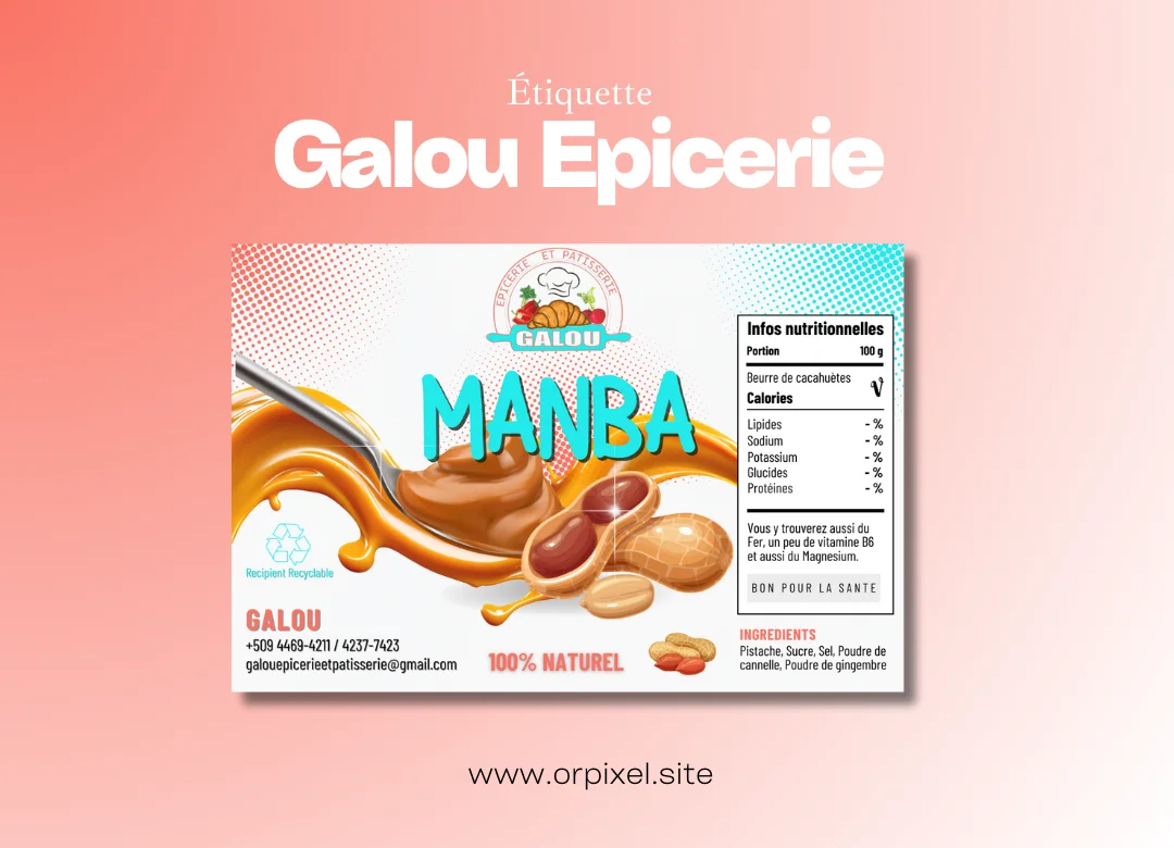 Conception d’une étiquette de produit alimentaire pour le marché local. L’objectif était de moderniser l’image d’un produit traditionnel et d’assurer une conformité d’étiquetage, transformant ainsi le packaging en un outil de vente direct.